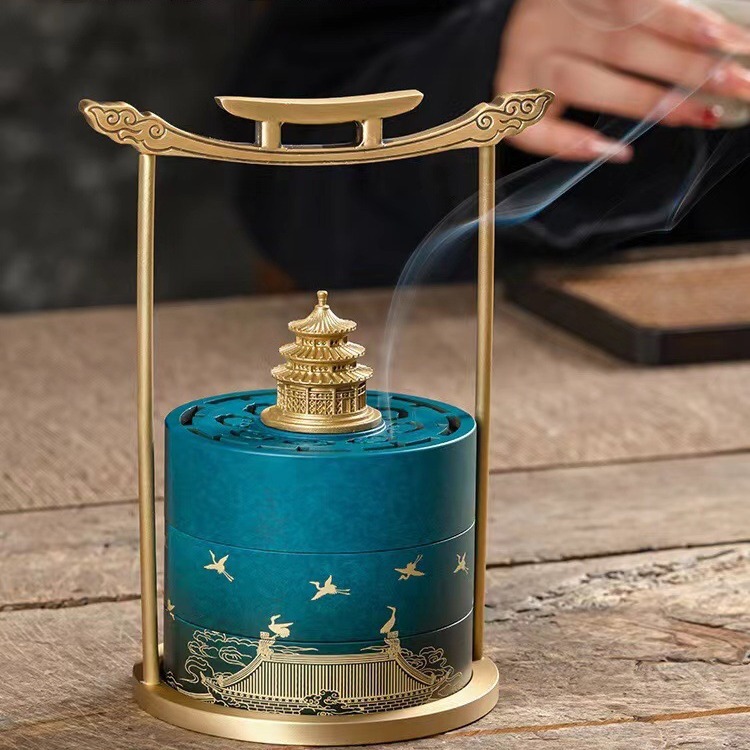 Square Stove Set of 9 Peacock Blue Brass Incense Gifts