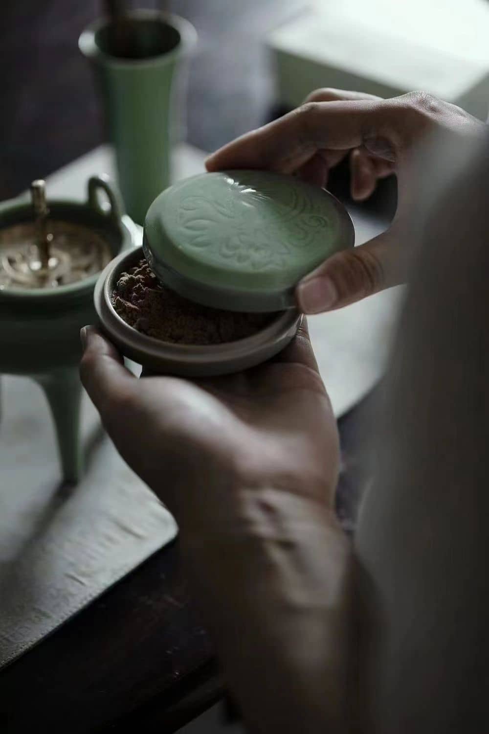 Song style elegant fragrant seal celadon set